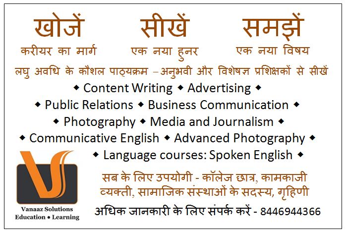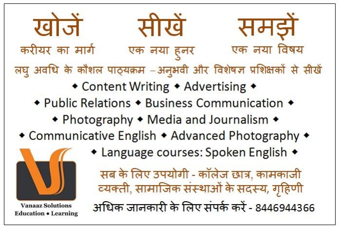 The courses currently available are content writing, advertising, public relations, business communication, photography, media and journalism, communicative English and advanced photography.