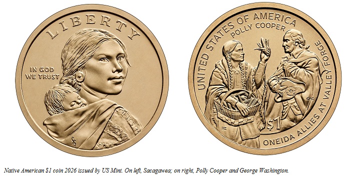 WASHINGTON (United States): The United States Mint earlier this week released its 2026 Native American $1 coin in recognition of Oneida member Polly Cooper.