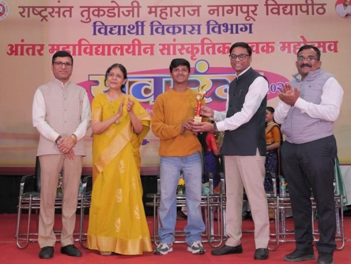 नागपुर (महाराष्ट्र, भारत) आदिवासी युवक शैलेश नेताम ने राष्ट्रसंत तुकडोजी महाराज नागपुर विश्वविद्यालय के ‘युवरंग 2026’ महोत्सव में ‘गोल्डन बॉय’ का खिताब जीता। यह आंतर महाविद्यालयीन प्रतियोगिता विश्वविद्यालय के छात्र विकास विभाग द्वारा आयोजित की गई थी।