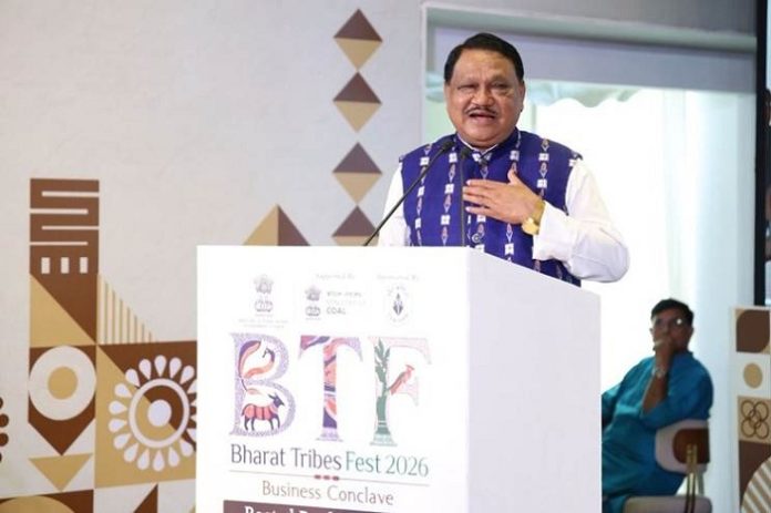 कार्यक्रम को संबोधित करते हुए जनजातीय कार्य मंत्री जुएल ओराम।