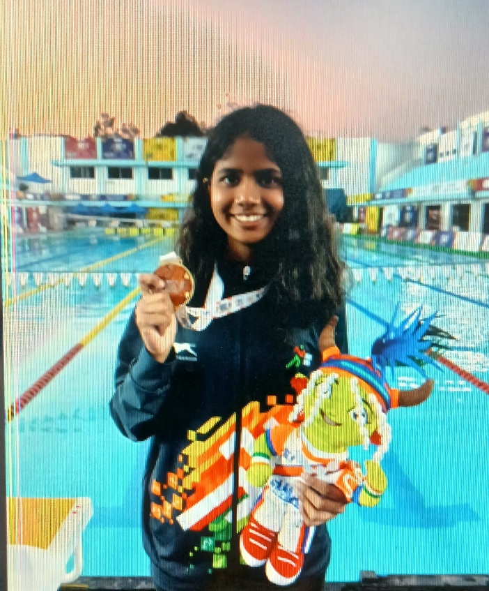 नागपुर (महाराष्ट्र, भारत): खेल और पढ़ाई का संतुलन साधते हुए राष्ट्रीय स्तर की तैराक तन्वी सुखदेव धुर्वे ने CBSE की दसवीं कक्षा की परीक्षा में 92 प्रतिशत अंक प्राप्त कर उल्लेखनीय सफलता हासिल की है। वह नागपुर के स्वामीनारायण स्कूल तथा रोशन स्विमिंग क्लब की छात्रा हैं।